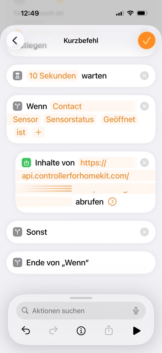 Controller kann keine „Warten“-Logik direkt in HomeKit injizieren, ohne dass wir die Automation in einen Kurzbefehl umwandeln. Wir gehen also zurück in die Apple-Home-App, nutzen dort aber den Link aus Schritt 1.