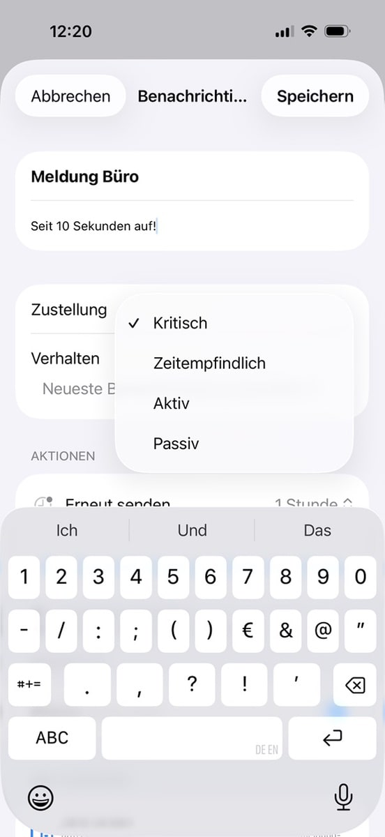 - Zustellung: Wähle „Kritisch“ oder „Aktiv“.