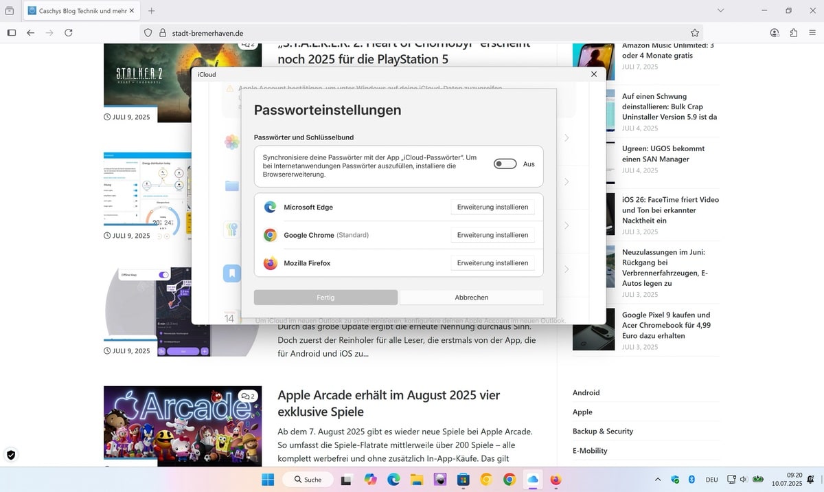 Die Firefox-Erweiterung für iCloud-Passwörter ist zwar bereits seit einigen Monaten im Mozilla Add-ons Store verfügbar, konnte unter Windows aber nicht genutzt werden. Mit dem aktuellen Update der iCloud-App ändert sich das. Voraussetzung für die Nutzung bleibt die Installation der „iCloud für Windows“-App aus dem Microsoft Store. Ihr müsst mal schauen, ich habe derzeit nur Windows 11 am Start, kann also nicht sagen, ob es unter Windows 10 auch funktioniert. In diesem Sinne: iCloud für Windows installieren, anmelden, die Erweiterung installieren und bei Bedarf den Passwort-Sync anschmeißen.