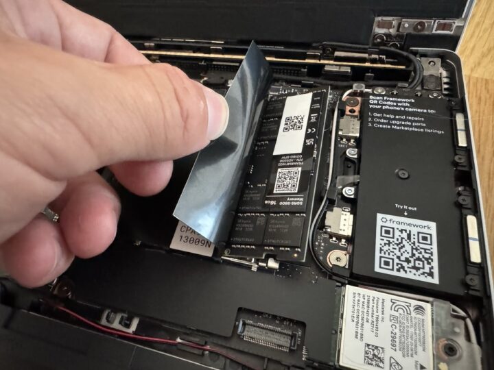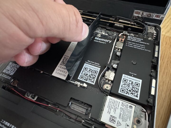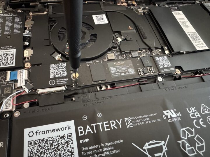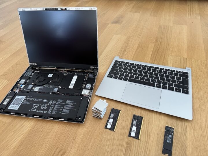 Framework erfüllt seinen USP hier wirklich sehr gut. Bauteile rutschen, werden teils magnetisch in der passenden Position gehalten. Das gibt auch ein sehr gutes Gefühl, wenn man dann tatsächlich mal ein Bauteil selbst austauschen muss (sämtliche Einzelteile stehen als Zubehör separat zur Verfügung). Sämtliche Bauteile sind zudem mit QR-Codes versehen, um diese entsprechend zu benennen oder um auf die Anleitung zu verweisen. Framework gibt einem da nicht nur die Möglichkeit, Bauteile (Speicher, Arbeitsspeicher) aufzurüsten – und selbst das ist bei vielen Notebooks (in diesem Formfaktor) schlicht nicht (mehr) möglich. Auch das Mainboard lässt sich gegen ein Modell mit künftigem Chipsatz tauschen. Framework denkt dabei gar so weit mit, dass sich das (alte) Mainboard dann auch als Einplatinencomputer über die Lebensdauer im Notebook hinaus mit (3D-Druck)-Gehäuse weiter einsetzen lässt.