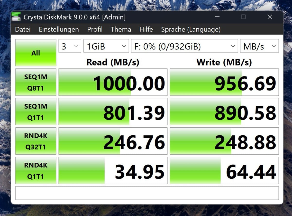 Positiv überrascht hat mich auch das Speichermodul, was mit einem Terabyte auf kleinstem Raum dennoch Schreib- und Lesegeschwindigkeiten von knapp über 1000 MB/s anbietet. Bei einem so modularen Notebook ist es aber auch kein (großes) Thema, bei Bedarf einfach einen neuen Festplatten-Riegel einzuschieben.