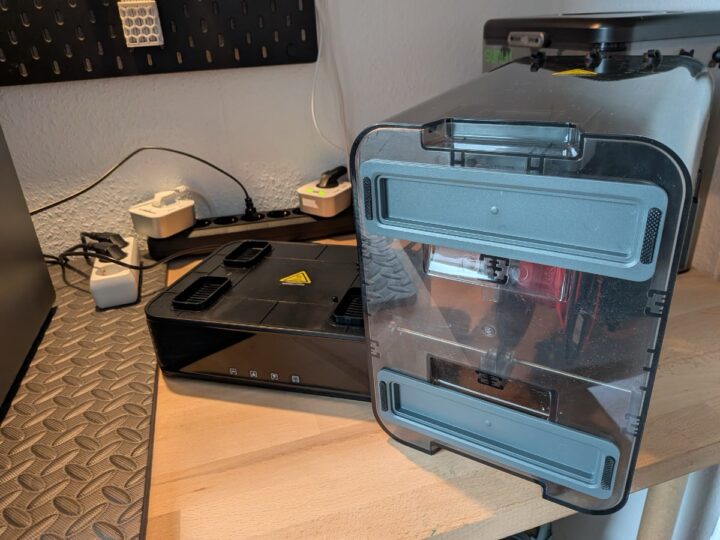 Dafür sind für jede Box jeweils auch zwei Dichtungseinsätze mitgeliefert, um die Öffnungen nach dem Abnehmen der Box zu schließen. Ganz so nahtlos klappt das dann also nicht. Den Trockner dann parallel sinnvoll weiterverwenden kann man ohne zweite Box nicht. Es wäre also einfach schlichtweg deutlich komfortabler, von vornherein zwischen zumindest zwei Boxen wechseln zu können. So könnte dann beispielsweise PETG 1 getrocknet aus der ersten Box heraus gedruckt werden, während ABS 2 über den Trockner in der anderen Box getrocknet wird für den anschließenden Druck.