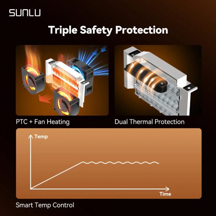 Die Bedienung erfolgt über ein digitales Display, das die Einstellung von Temperatur und Trocknungszeit ermöglicht. Praktischerweise sind hier auch wieder Voreinstellungen für die verschiedenen Filamenttypen hinterlegt, was die Handhabung erleichtert. Absolut hervorzuheben ist die Betriebslautstärke des SP2. Keiner meiner bisherigen Trockner arbeitete bislang so angenehm leise. Hier hat SUNLU definitiv allerhand Optimierungen eingepflegt.