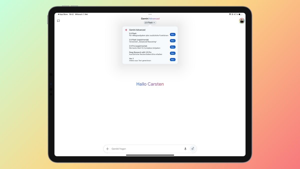 Google hat heute ein größeres Update für seine KI-Anwendung Gemini veröffentlicht. Die Version 1.2025.1770102 bringt dabei einige Neuerungen mit sich, die besonders iPad-Nutzer freuen dürften. Nach längerer Wartezeit gibt es nun endlich eine optimierte iPad-Anwendung, die den größeren Bildschirm der Apple-Tablets voll ausnutzt. Die Bedienung im Vollbildmodus macht die Interaktion mit Gemini deutlich angenehmer.