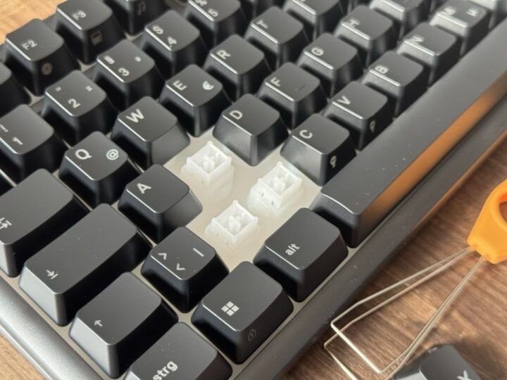 Bei den Keycaps setzt Glorious auf ABS mit zusätzlicher UV-Beschichtung, damit Beschriftung und Oberfläche länger halten und nicht so schnell speckig werden oder gar verschwinden. Das ist logischerweise nicht das hochwertigste, was es gibt, aber in dem Bereich absolut in Ordnung. Die Profile und Beschriftungen sind dennoch angenehm und auch nach längerem Tippen noch griffig. Natürlich kann man auch hier die Keycaps dank dem MX-kompatiblem Stem tauschen. Das ist super einfach und man hat alles an Werkzeug in der Box. Da könnte sich Razer ruhig mal ein Scheibchen abschneiden. Dort geht die Individualisierung meist entweder komplett flöten oder es ist nur schwer möglich.