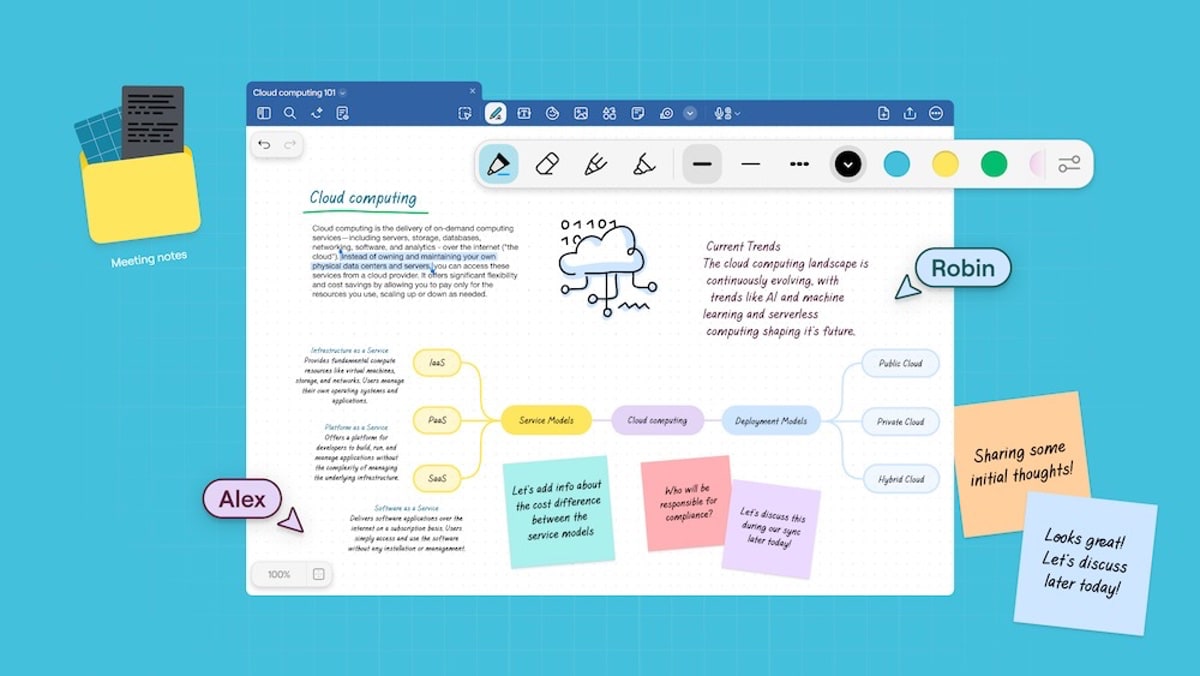 Mit der neuen Whiteboard-Funktion können mehrere Nutzer gleichzeitig an Projekten arbeiten. Texte, Diagramme und andere Elemente lassen sich gemeinsam erstellen und bearbeiten. Auch bei der Dokumentenerstellung gibt es Verbesserungen, Texte, Bilder, GIFs und Tabellen können jetzt schmerzfrei eingefügt werden.