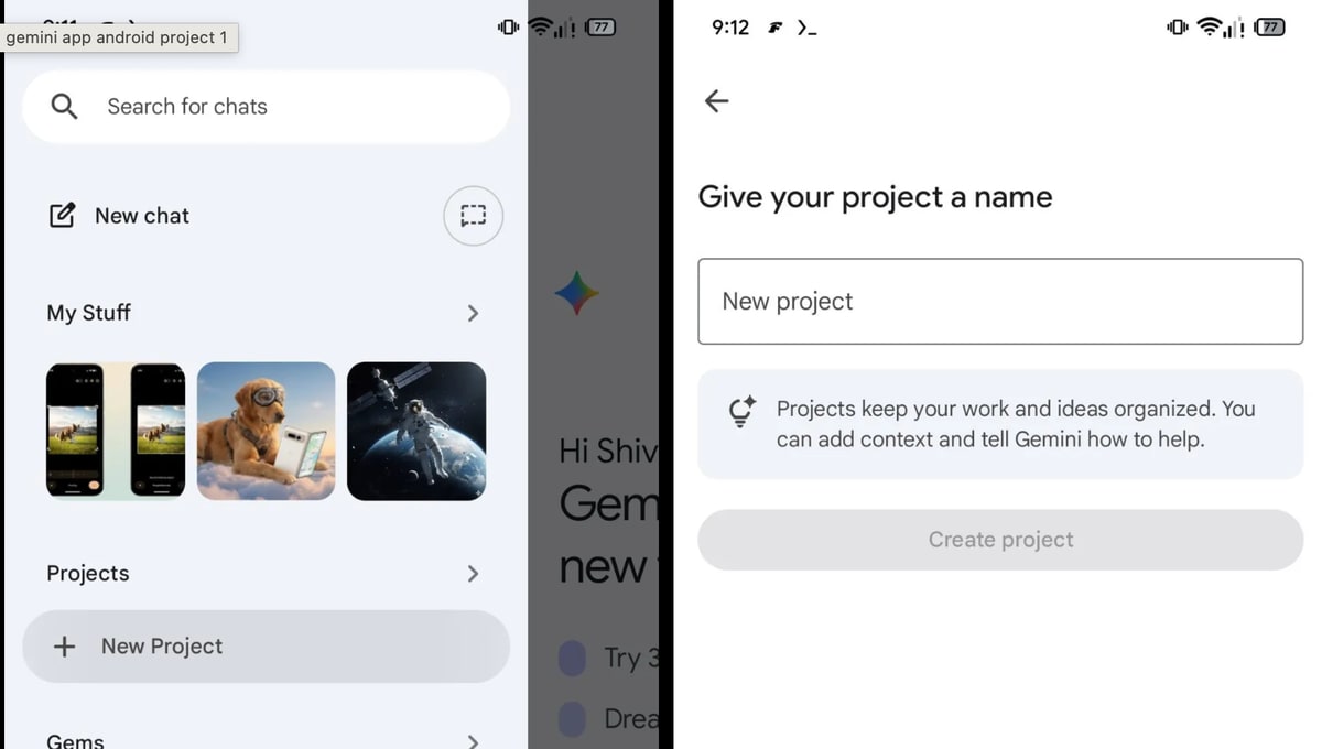 Google Gemini: Projekte-Feature kündigt sich in der Android-App an