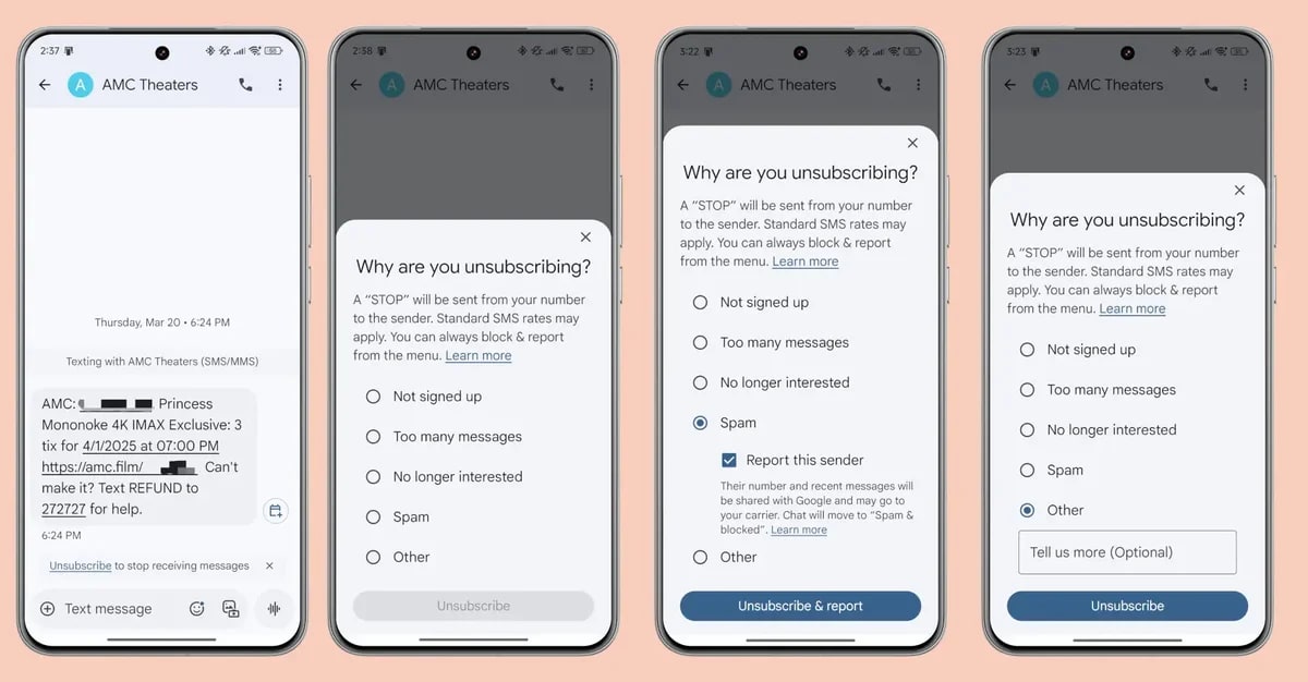 Google Messages plant vereinfachte Abmeldung von automatisierten Textnachrichten