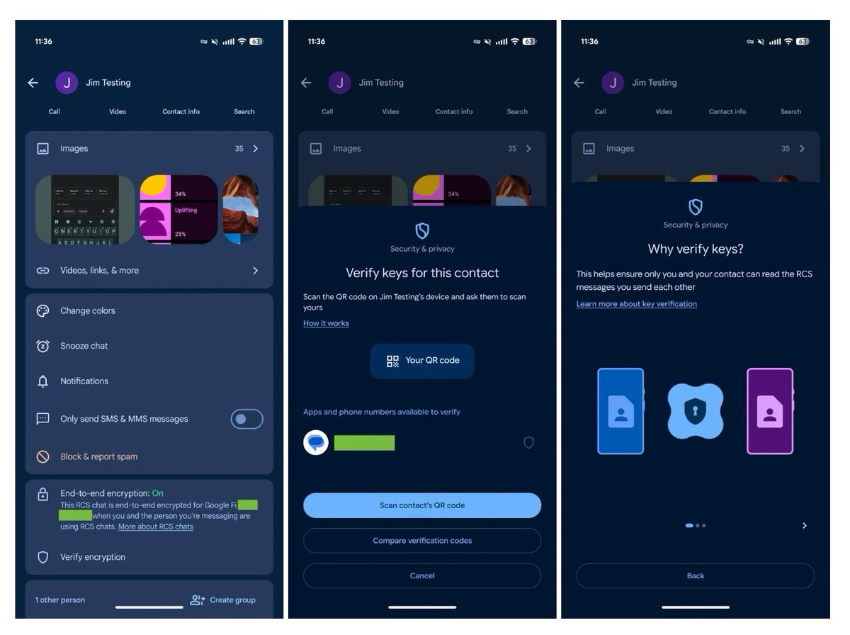 Im neuen „Sicherheit & Datenschutz“-Menü finden Nutzer die Option zur Schlüsselverifizierung. Der Prozess gestaltet sich unkompliziert: Beide Gesprächspartner scannen gegenseitig ihre QR-Codes. Diese Methode stellt sicher, dass ausschließlich die vorgesehenen Teilnehmer die RCS-Nachrichten lesen können.