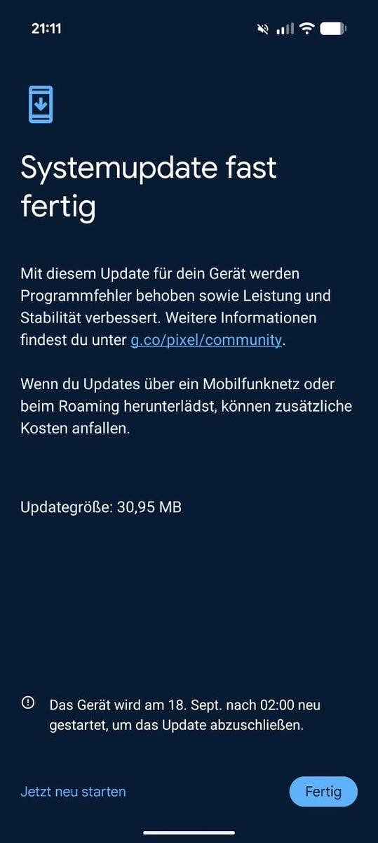 1. Pixel 9 hat auch geupdatet.