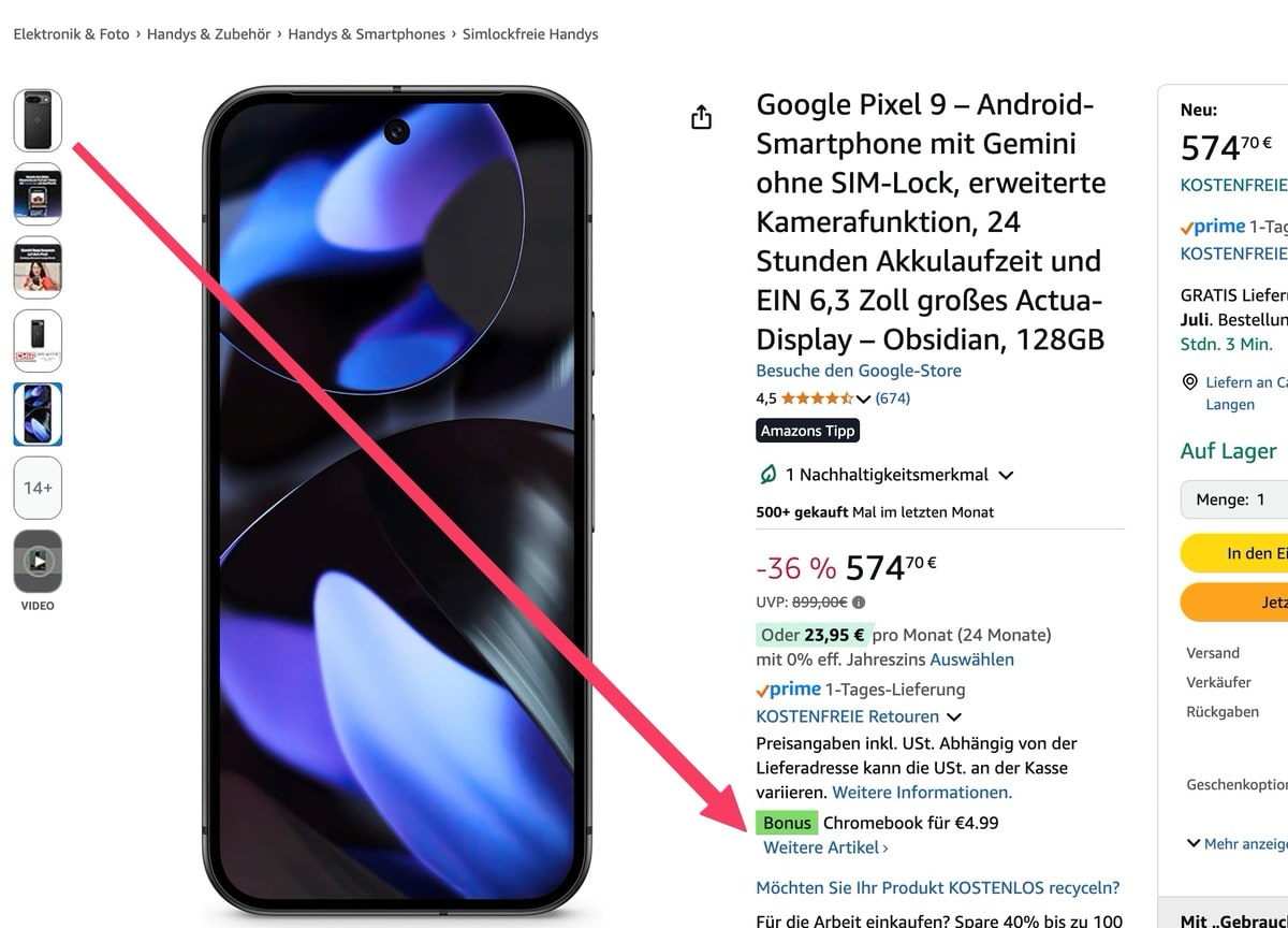 Die Aktion läuft noch bis zum 7. Juli 2025 und ist exklusiv über den Google Store bei Amazon verfügbar. Der Preis für das Pixel 9 variiert je nach gewählter Speicherkonfiguration, das Chromebook gibt es für 4,99 Euro dazu.