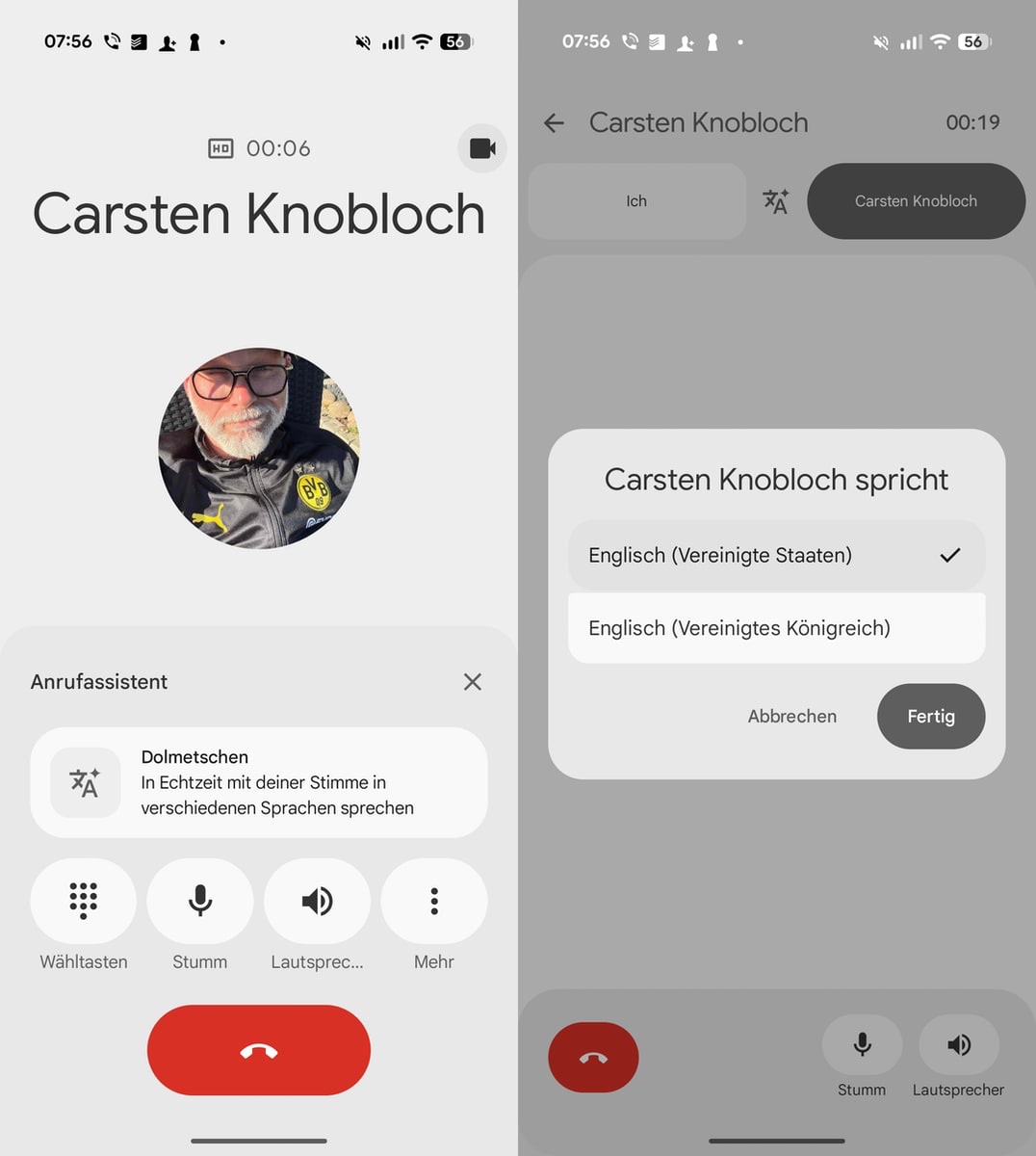 Die Funktion hab ich direkt am ersten Abend mit dem Pixel 10 Pro ausprobiert. Habe mit meiner Frau telefoniert und sie hat Englisch geredet. Das Übersetzen hat gut geklappt, der erste Satz klang noch nicht nach ihrer Stimme, ab dem zweiten Satz klang es aber wirklich extrem nach ihr. Das ist schon wirklich beeindruckend, vor allem weil es ja on device passiert.