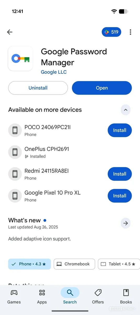 Google arbeitet laut Bericht an einer Verbesserung des Play Stores, die das Verwalten von Apps über mehrere Geräte hinweg erleichtern soll. Ein neuer „Deinstallieren“-Button in den App-Detailseiten ermöglicht künftig das direkte Entfernen von Anwendungen auf anderen verbundenen Android-Geräten.