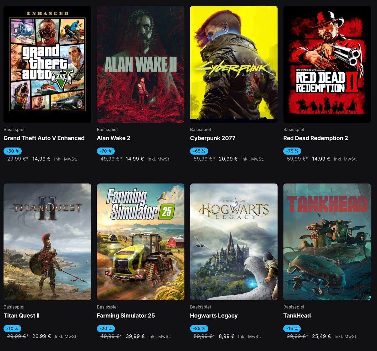Rockstar Games ist gleich mit zwei Blockbustern vertreten: GTA V Enhanced glänzt mit Raytracing-Unterstützung und dem gewohnt chaotischen Gameplay. Red Dead Redemption 2 entführt in eine lebendige Western-Welt, die bis heute ihresgleichen sucht. Auch Cyberpunk 2077 darf nicht fehlen – Night City ist 2025 noch genauso beeindruckend wie zum Release (und mittlerweile ja auch für den Mac zu haben).