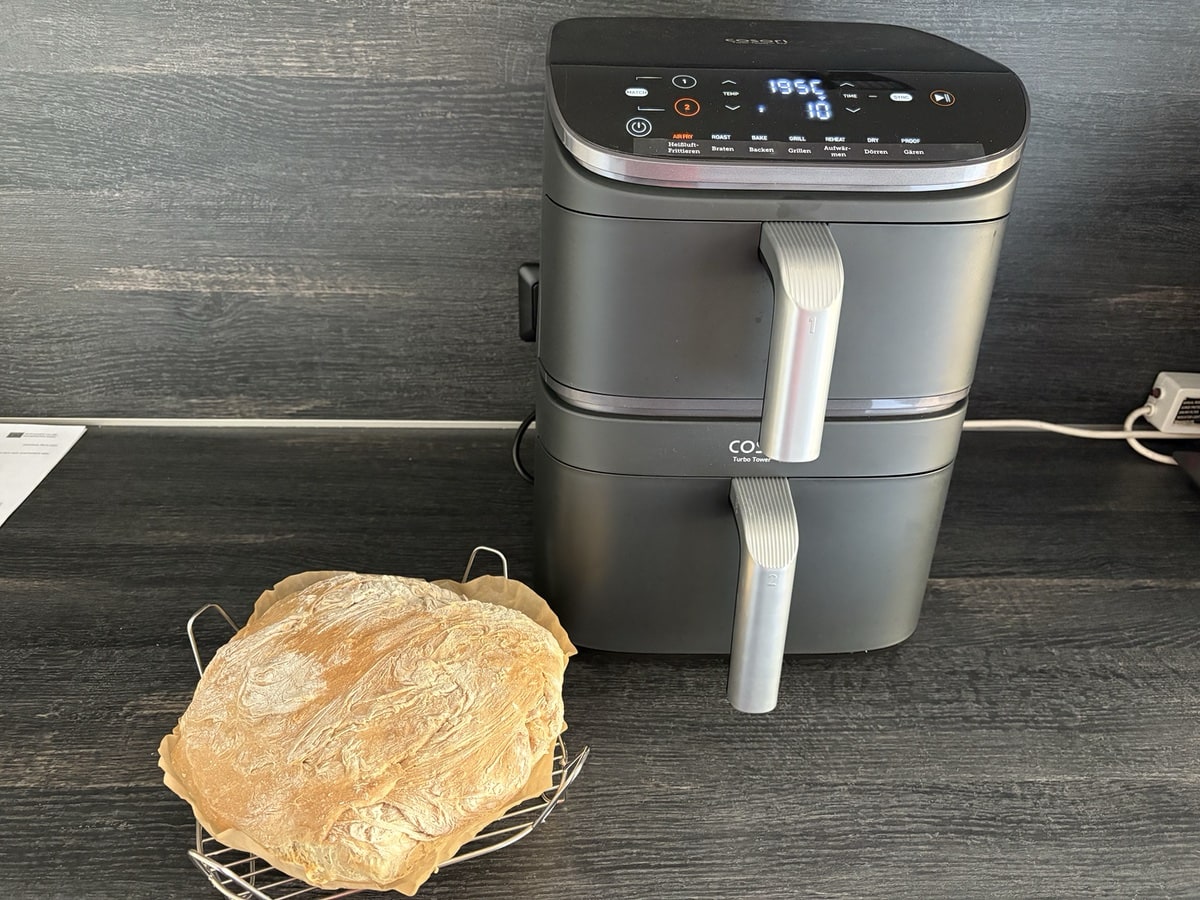 Was unterm Strich so bleibt: absolut feines Gerät. Narrensicher, flott. Tatsächlich kann es auch mal zum Ausprobieren einladen, wenn man sich flugs etwas zaubern möchte. Airfryer laden mich persönlich mehr ein, etwas zu machen als ein klassischer Ofen. Selbst Dinkelbrot machen wir im Gerät. Letzten Endes hat man gar drei Ebenen, denn für den unteren Korb ist zusätzlich ein Bratrost im Lieferumfang enthalten.