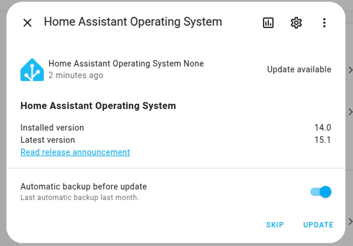 Zudem lässt sich jetzt ein Backup vor der Aktualisierung des Home-Assistant-Betriebssystems per Schaltfläche anlegen. Es gibt zwar einen Fallback-Mechanismus, für fehlgeschlagene Aktualisierungen, dennoch ist es wohl sinnvoll, vor einem solchen Einschnitt ein aktuelles Backup zu haben.