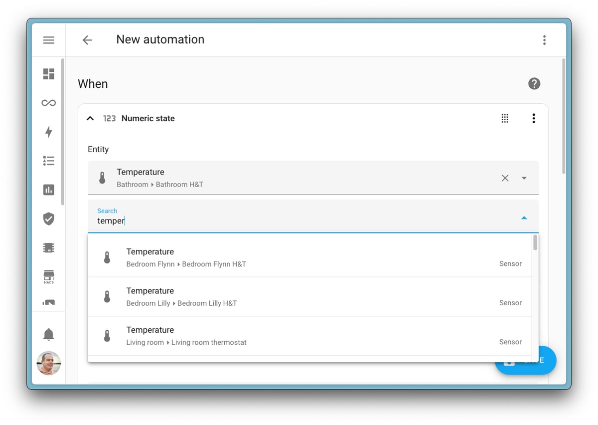 Home Assistant arbeitet weiter daran, diverse Dinge in der Benutzeroberfläche zu visualisieren. Jetzt hebt man immer hervor, um welche Entität es gerade geht. Dieser Kontext ist im Entity-Picker in der Benutzeroberfläche verfügbar. Diese Auswahlliste sieht man immer, wenn man eine Entität auswählt z. B. in einer Karte, einer Automatisierung oder einem Skript. Hier wird jetzt auch der Name des Geräts und der Bereich mit angezeigt.