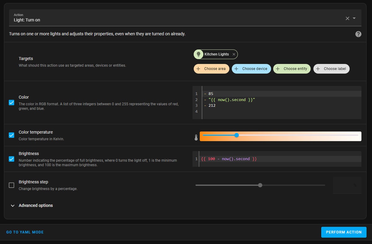 Wer als Power-User mit Vorlagen in Automatisierungen und Skripten arbeitet, dem wird wohl bekannt sein, dass man hier bei jedem Aktionsblock mit Vorlagen auf YAML zurückgreift. Fortan wird nur noch für Felder, die eine Aktionsvorlage enthalten, auf den Code-Editor zurückgegriffen und nicht mehr für den gesamten Block. Der Rest der Benutzeroberfläche bleibt somit fortan weiterhin benutzbar und man kann ihn bearbeiten: