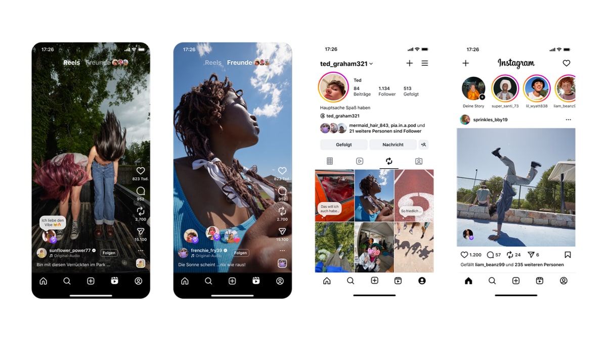 Instagram hat mehrere neue Funktionen zum Teilen von Inhalten gezeigt. Diese sollen die Plattform darüber hinaus auch persönlicher gestalten. Ab sofort erlaubt man das erneute Teilen öffentlicher Reels und Feed-Posts. Beim Reposten von Inhalten können zudem Gedanken oder Kommentare direkt auf dem Repost angezeigt werden. In diesem Zug führt man auch einen Repost-Tab im Profil ein, auf dem alle geteilten Inhalte, ähnlich einer persönlichen Highlight-Galerie, gesammelt werden. Reposts können auch im Feed von Freunden auftauchen, etwa im neuen Friends Tab für Reels.