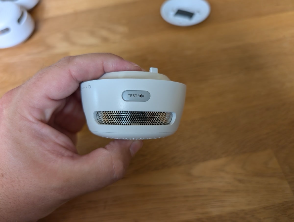 Bei uns im Haus agierten bislang noch immer die altbekannten, großen Rauchmelder mit 9V-Batterieblock, welche mittlerweile hart in die Jahre gekommen sind und entsprechend nun endlich durchgetauscht werden konnten. Die XS01-M sind dabei deutlich handlicher, fast schon als „knuffig“ zu betiteln. An der Seite befindet sich ein einzelner, gut sichtbarer Knopf, mit dem nicht nur ein Probealarm ausgelöst werden kann, sondern im Ernstfall (besser danach) dann auch der Alarm wieder beendet werden kann.