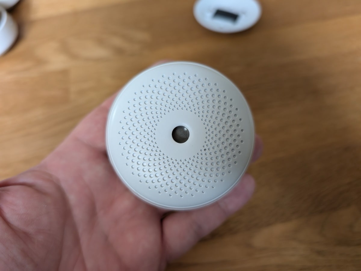 Vor dem Anbringen kommt das Einbinden ins System, was wirklich einfach und flott vonstattengeht. In der App wird man durch den Vorgang geführt, Knöpfchen drücken, voilà. Auch hier gibt es dann beim erfolgreichen Einbinden zwei laute Signaltöne. In dem Fall half hier, um die Frau nicht zu erschrecken, den Daumen auf der Lautsprecheröffnung zu lassen, damit die Lautstärke zumindest ein wenig gedämpft ist für den Moment.