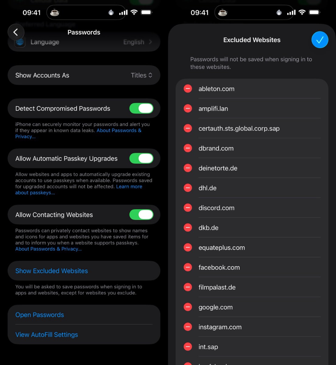 Im Bereich Sicherheit gibt es eine neue Übersicht für Webseiten, auf denen man bewusst keine Passwörter speichern möchte.