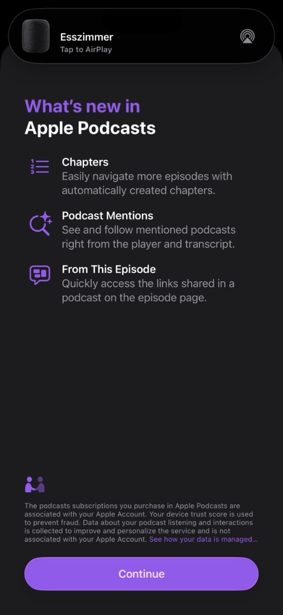 Podcasts-Nutzer können sich auch freuen. Die App erstellt jetzt automatisch Kapitel für einzelne Episoden. Außerdem lassen sich in den Transkriptionen andere Podcasts oder Links direkt antippen.