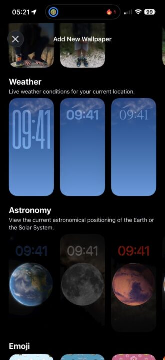 Es gibt auch eine neue Sektion in den Einstellungen für die Hintergrundbilder, die die Wetter-Wallpaper enthält. Bisher war Wetter und Astronomie in einer Sektion, das wurde nun geteilt.