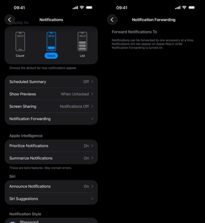 Neu ist auch eine Option in den Benachrichtigungseinstellungen, die euch Benachrichtigungen auf ein Drittanbieter-Wearable weiterleiten lässt. Solltet ihr also eine Smartwatch besitzen, die nicht von Apple ist, sorgt dieses Feature später für eine bessere Integration. Benachrichtigungen können immer nur auf ein Zubehörteil weitergeleitet werden. Das heißt, wer eine Apple Watch und ein anderes Gerät trägt, muss sich entscheiden.