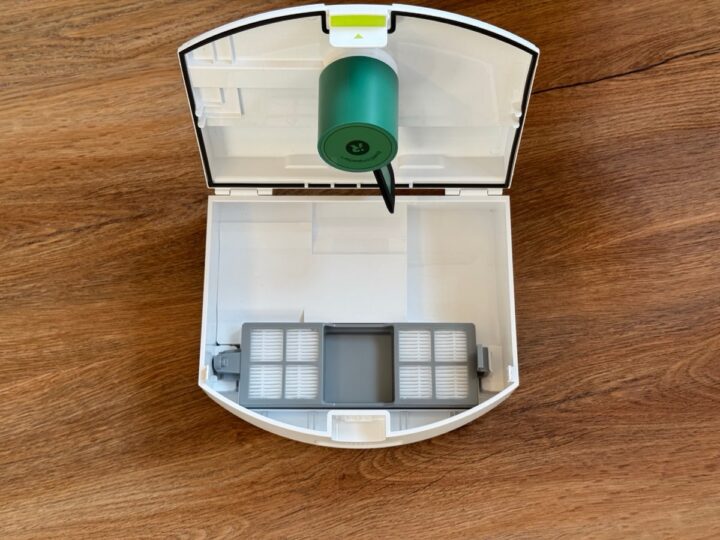 Im Alltag zeigt der Roomba 205 DustCompactor aber seine größte Stärke, nämlich den neuen Staubbehälter mit Pressfunktion. Die eingebaute Presse verdichtet Staub, Haare und Flusen so effektiv, dass man den Behälter laut iRobot nur alle zwei Monate leeren muss. Im Test musste ich tatsächlich seltener ausleeren als bei vergleichbaren Modellen. Das ist ein echter Pluspunkt, gerade für Haushalte mit Haustieren oder viel Teppich. Wir haben hier beispielsweise zwei so Stubentiger, die das tägliche Saugen notwendig machen.