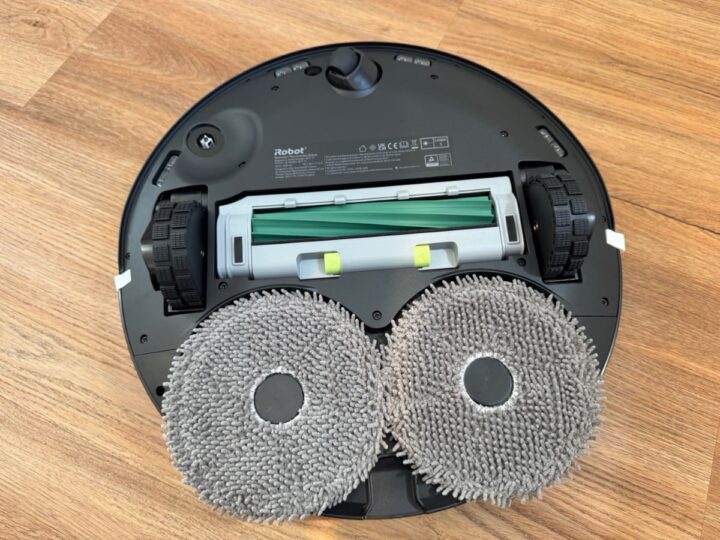 Die Moppfunktion arbeitet mit zwei rotierenden Pads, die im Dock befeuchtet werden. Leider gibt es nur eine Wassermenge und nicht wie bei den älteren Modellen verschiedene Feuchtigkeitsstufen. Die eingestellte Wassermenge könnte für den einen oder anderen zu nass sein. Nach dem Wischen bleibt der Boden oft zu nass zurück, was auf Dauer nicht ideal ist. Hier fehlt eine Einstellungsmöglichkeit. Für leichte Verschmutzungen reicht die Moppfunktion, aber für hartnäckigen Schmutz oder größere Flächen ist sie zu wenig flexibel. Die Schrubb-Funktion ist noch vorhanden. Erkennt der Roboter mehr Schmutz, dann fährt er auf der Stelle hin und her.