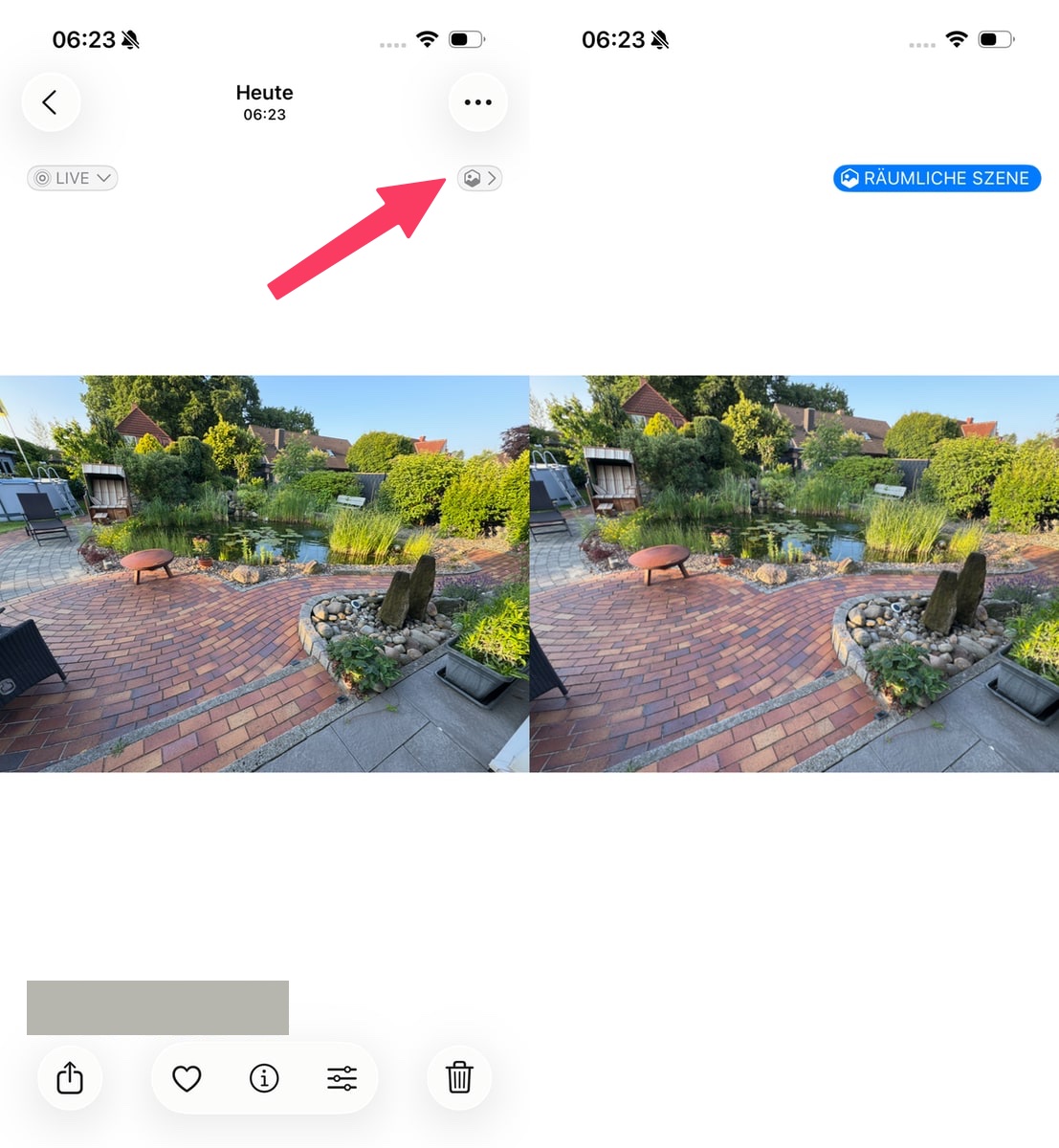 Bereits jetzt kann man räumliche Fotos mit dem iPhone aufnehmen. Bislang sind sie für die Vision Pro gedacht, doch mit iOS 26 geht Apple einen anderen Weg, denn nun kann jedes Foto ein räumliches werden. Die könnt ihr euch dann nicht nur auf der Vision Pro anschauen, sondern die Fotos erscheinen – mehr oder weniger – auch räumlich, wenn ihr sie auf dem iPhone betrachtet. So geht es: Öffnet die Foto-App unter iOS 26, wählt ein Foto aus und wählt oben rechts das Symbol für die Räumlichkeit aus. Klickt drauf und ihr werdet sehen, dass ein kurzer Schleier über das Foto gelegt wird, dass in der Folge räumlich dargestellt wird, wenn ihr euer iPhone dementsprechend neigt oder seitlich dreht. Kleiner Effekt, der vielleicht gefällt.
