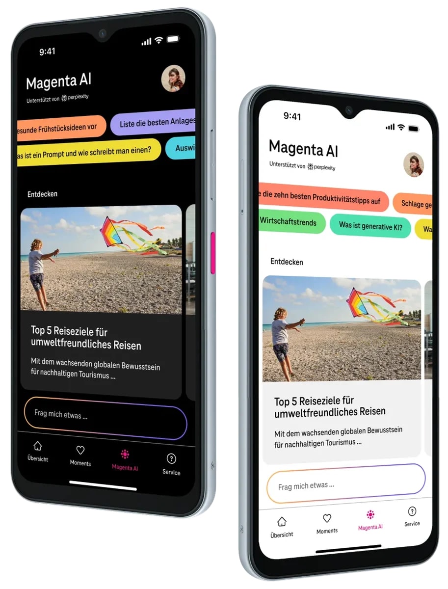Der integrierte KI-Assistent lässt sich per Magenta-Button oder Doppelklick auf den Power-Button aktivieren und unterstützt bei alltäglichen Aufgaben. Er plant Reisen, übersetzt Texte, erstellt Trainings- und Ernährungspläne oder hilft bei der Terminverwaltung. Die Bedienung erfolgt wahlweise per Sprache oder Text. Perplexity eben, der auf dem Android-Smartphone als Standard eingerichtet ist.