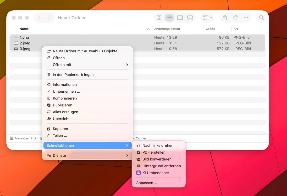 Ich hatte in diesem Beitrag beschrieben, wie man automatisch Ordner überwachen und Screenshots mittels KI umbenennen kann. Stellt sich raus, geht vielleicht doch etwas praktischer und einfacher, auch mit mehreren Dateien.