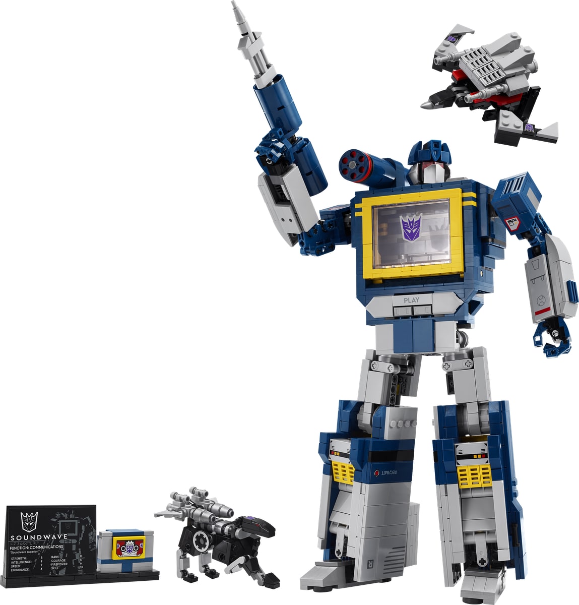 Die LEGO Group hat ein neues Set vorgestellt, das Transformers-Fans erreichen soll. Der Decepticon Soundwave erscheint als LEGO Icons Set mit der Nummer 10358 und ergänzt damit die bestehende Transformers-Reihe um Optimus Prime und Bumblebee. Das Set besteht aus 1.505 Teilen und bietet einige Spielereien. So lässt sich die Figur ohne Umbau vom Roboter in einen Kassettenspieler verwandeln. Ein Drück auf die Play-Taste aktiviert Soundeffekte und die Sprachausgabe, ein Novum in der LEGO Transformers-Reihe.