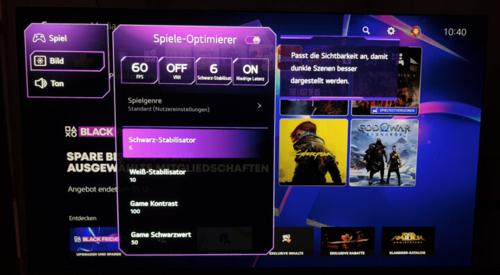 Denn das ist das Spannende: Selbst in sonst detaillierten Testberichten und den üblichen Communitys bei Reddit, AVS, HiFi-Forum und mehr findet man entweder nur wilde Spekulationen oder die Empfehlung die Standardeinstellung für die Schwarz- und Weiß-Stabilisatoren im LG Game Optimizer alias Spiele-Optimierer zu nutzen. Doch für alle, die völlig neu im Thema sind: Der LG Game Optimizer ist quasi ein spezielles Tool / ein Unterbereich, in dem ihr einige Einstellungen vornehmen könnt, die primär für Games relevant sind.