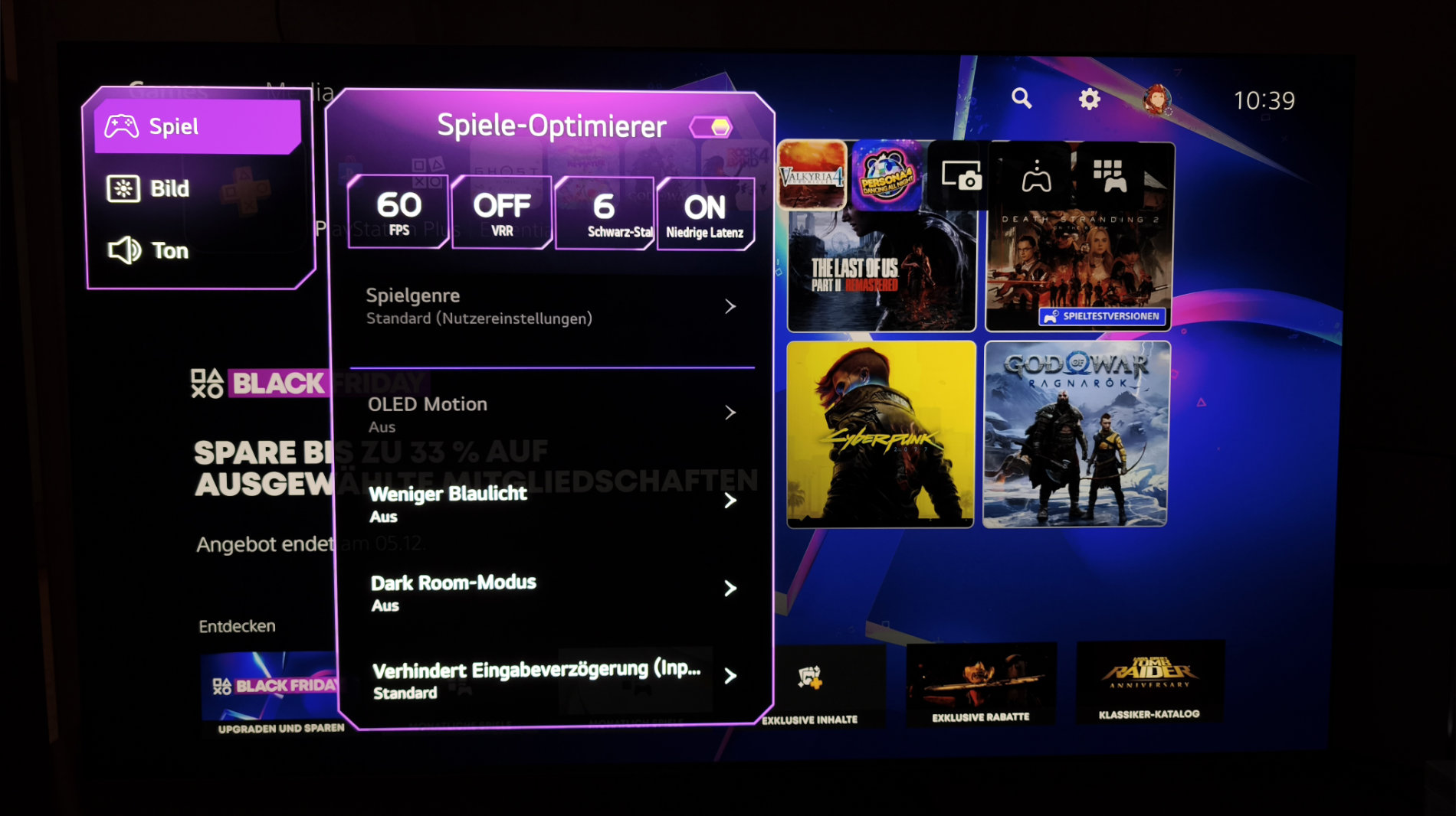 Es gibt den Game Optimizer bereits seit dem Modelljahr 2021, im Detail bin ich nun daheim aber eben erst jetzt beim Wechsel vom C9 zum G5 damit in Kontakt gekommen. Ihr könnt im Spiele-Optimierer beispielsweise, was ich sehr empfehle, auch das Tonemapping auf HGiG stellen, VRR (Variable Refresh Rate) aktivieren oder auch versuchen den Input-Lag zu minimieren. Wie schon erwähnt, ist eine recht mysteriöse und in Tests stets unerwähnte Einstellung in dem Schwarz- bzw. Weiß-Optimierer zu finden.