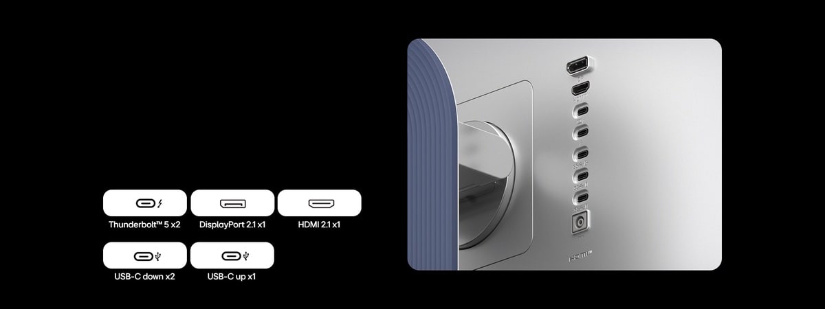 Die Thunderbolt 5-Schnittstelle ist dabei der eigentliche Kracher. Mit einer Übertragungsrate von 120 Gbit/s ist sie dreimal schneller als der Vorgänger. Praktisch bedeutet das: 4K-Rendering in Echtzeit und flotte Übertragung von 8K-RAW-Videos. Wer zwei dieser Monitore verketten will, kein Problem dank Daisy-Chaining.