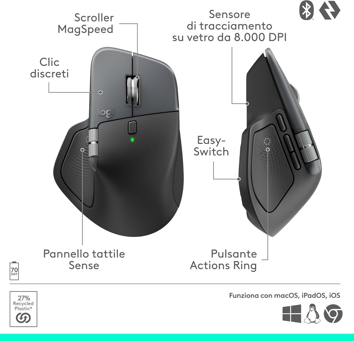 Einige meinen sowas spielt bei Office etc. keine Rolle, aber dem kann ich nur widersprechen, man landet aber auch da viel schneller dort wo man hinwill weil man den Cursor viel besser sieht wenn er in Bewegung ist und er auch weniger Latenz hat. Auch das Gewicht von nur 101g (gut 40g weniger als die MX Master Mäuse) macht sich mehr als nur subtil bemerkbar.