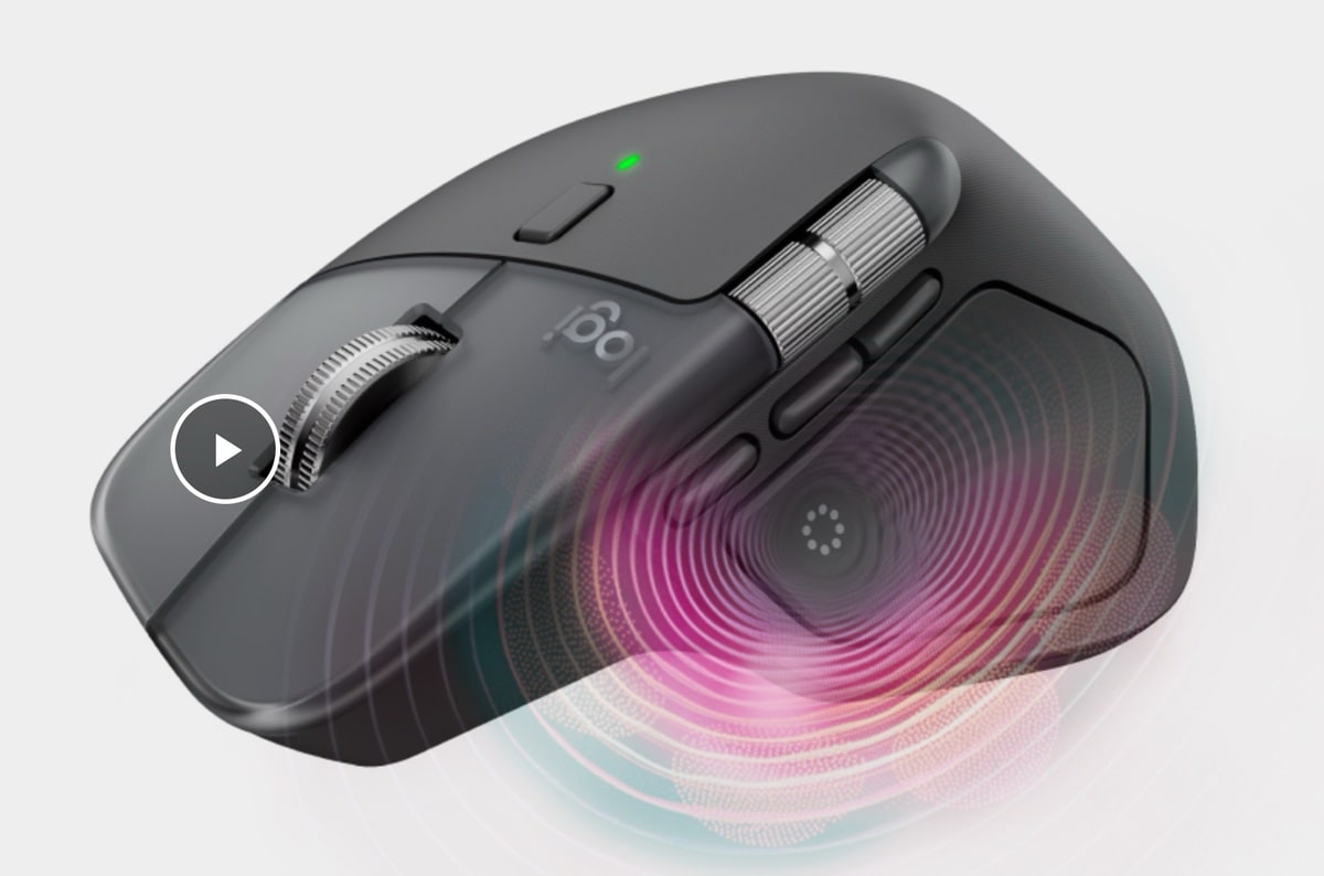 Technisch bietet die kabellose MX Master 4 die gewohnt ergonomische Form mit Scrollrad und wurde um ein haptisches Sense-Panel an der Seite erweitert. Eine zusätzliche Daumentaste ergänzt die Bedienelemente im Vergleich zum Vorgänger.