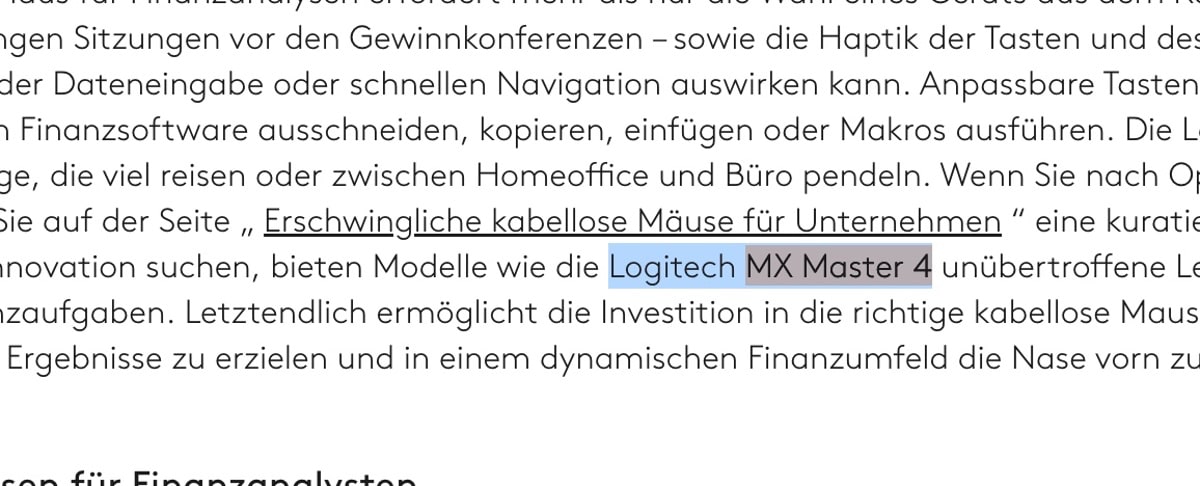 Die Logitech MX Master 4 wird erscheinen, das dürfte außer Frage stehen (wir berichteten). Wann die neue Maus erscheint, ist bislang nicht bekannt, ich würde so aus dem Bauch heraus den September oder den Oktober anpeilen. Logitech selbst hatte die Maus ja bereits geleakt – oder geschickt platziert, wie auch immer man das sehen möchte. Mittlerweile macht das Unternehmen auch keinen Hehl mehr daraus, man hat sogar damit begonnen, die Webseiten darauf vorzubereiten. Mittlerweile bewirbt man die Maus auch für ihre Vielseitigkeit und unübertroffene Leistung auf der Webseite: