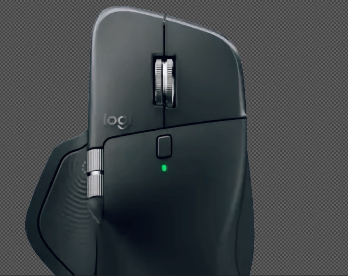 Vielleicht ist das Ganze auch ein Photoshop-Job von Logitech, denn man kann auf der Daumenablage links keine Gestentaste erkennen, dafür ist irgendetwas unter dem Daumenrad zu sehen – und die Tasten sind auch klar durchgezogen.