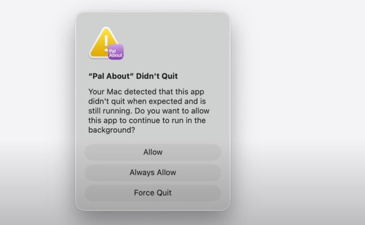 Konkret bedeutet das: Schließt man eine App, prüft macOS, ob noch Prozesse aktiv sind. Ist dies der Fall, erscheint eine Benachrichtigung mit dem Hinweis, dass die App nicht wie vorgesehen beendet wurde. Der Nutzer hat dann die Wahl: Er kann den Prozess einmalig oder dauerhaft zulassen oder sofort beenden.