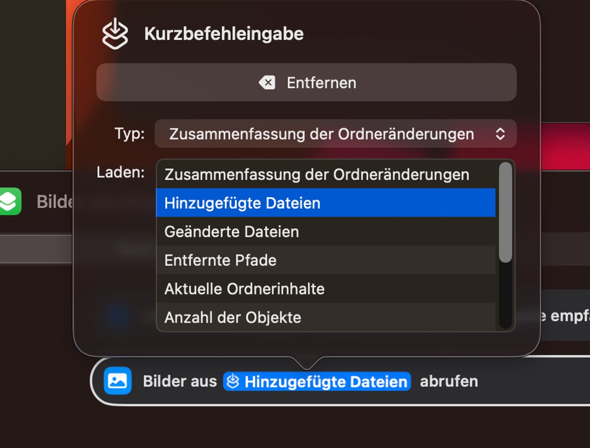 - Wenn Dateien dem Ordner hinzugefügt werden auswählen.