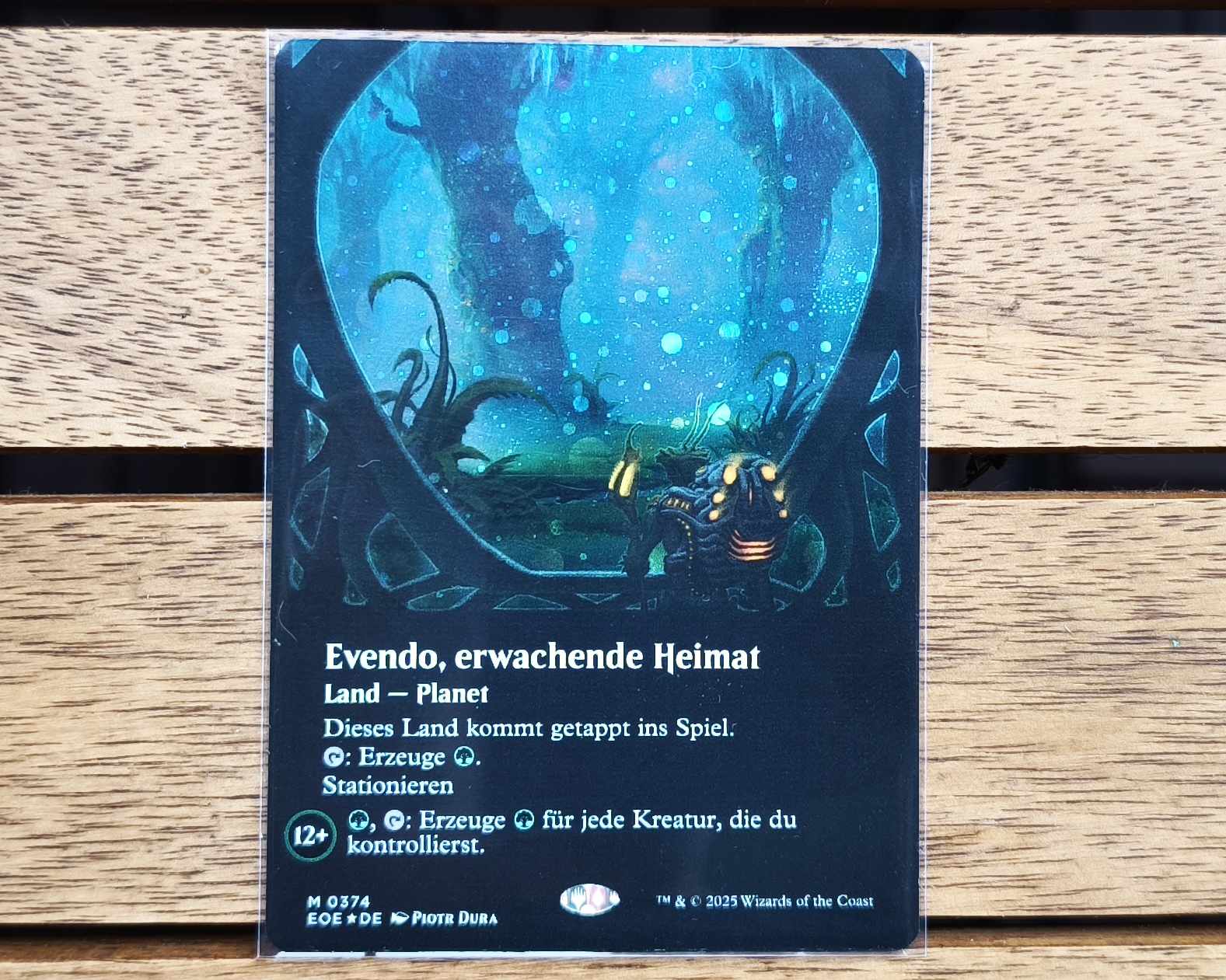 Neu sind in „Am Rande der Ewigkeiten“ auch die Planeten. Das sind neue Nicht-Standardländer. Dass sie Planeten sind, hat aber regeltechnisch keine besondere Bedeutung, außer dass man sich merken kann, dass alle das oben beschriebene „Stationieren“ als Fähigkeit haben. Die Planeten sind allerdings allesamt recht mächtige Länder, siehe das obige „Evendo, erwachende Heimat“. Das Land entspricht im Grunde einer modernen, abgeschwächten Version von „Gaea’s Cradle“.