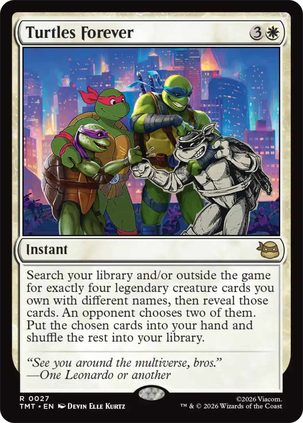 2026 erscheinen insgesamt 7 Sets für Magic: The Gathering. Vier davon zählen zur Reihe Universes Beyond, sind also Crossover mit bekannten Marken. Neben Teenage Mutant Ninja Turtles wird es auch Kooperationen mit Star Trek, Marvel Super Heroes und Der Hobbit geben. Im Falle der Turtles hat auch einer der Schöpfer der Schildkröten, Kevin Eastman, mitgewirkt. Er hat die vier Headliner-Karten der Turtles gezeichnet. Diese werden aber exklusiv in den englischsprachigen Sammlerboostern zu haben sein.