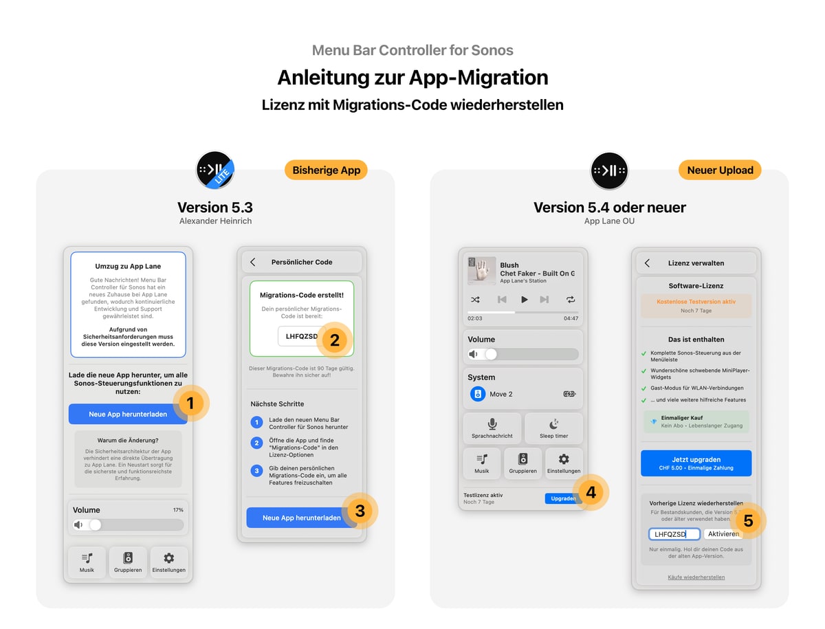 Für Bestandskunden ist das etwas anders. Sie müssen die „alte App“ Menu Bar Controller Lite herunterladen und in dieser einen Code generieren. Diesen Code kann man dann wiederum für den Lifetime-Zugang in der neuen App nutzen.