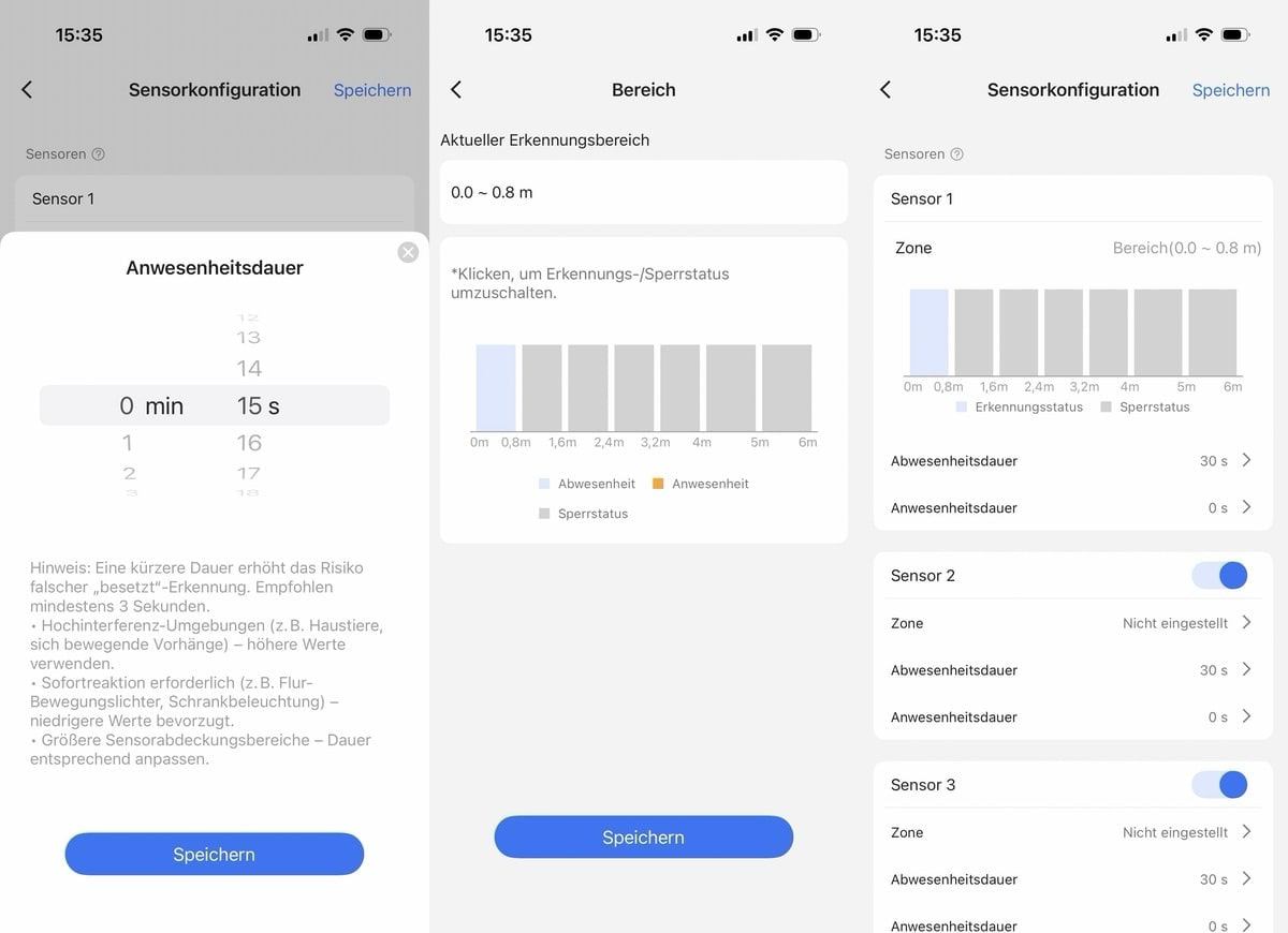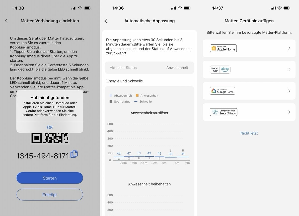 In der Meross-App hatte ich beispielsweise Sensor 1 konfiguriert, in Apple Home ist es aber die Nummer 3. Solltet ihr euch da auf alle drei Sensoren verlassen wollen, so macht das in Ruhe für einen nach dem anderen und benennt das sinnig um. Unterm Strich nach den ersten Tests?