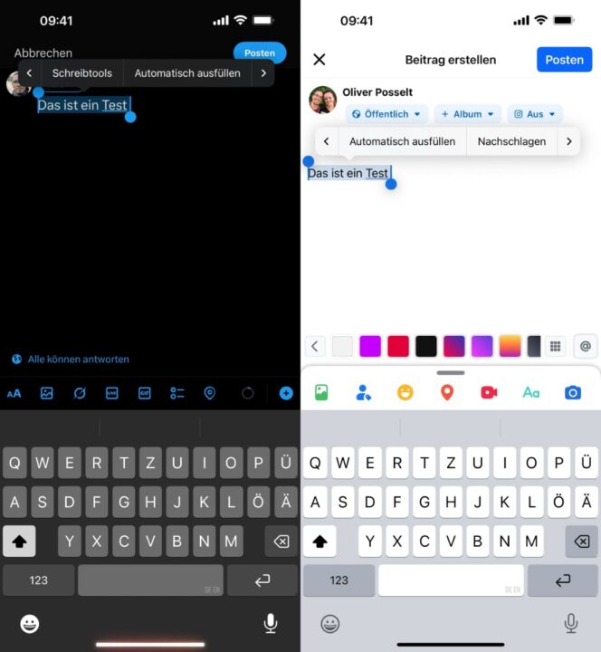 Links die Optionen in X, Rechts in Facebook (geht auch nicht in den anderen Meta-Apps)