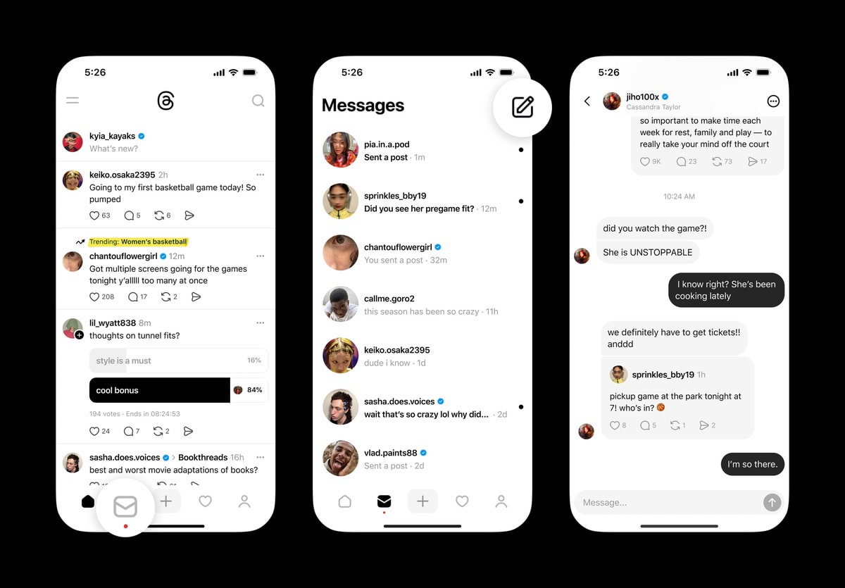 Meta rollt jetzt die Direct-Message-Funktion für alle Threads-Nutzer aus. Die Ankündigung folgt auf eine Testphase, die erst vor wenigen Wochen startete. Die neue Funktion fügt der Threads-App einen eigenen Messaging-Tab hinzu, über den Nutzer ihre Nachrichten verwalten und mit anderen kommunizieren können.